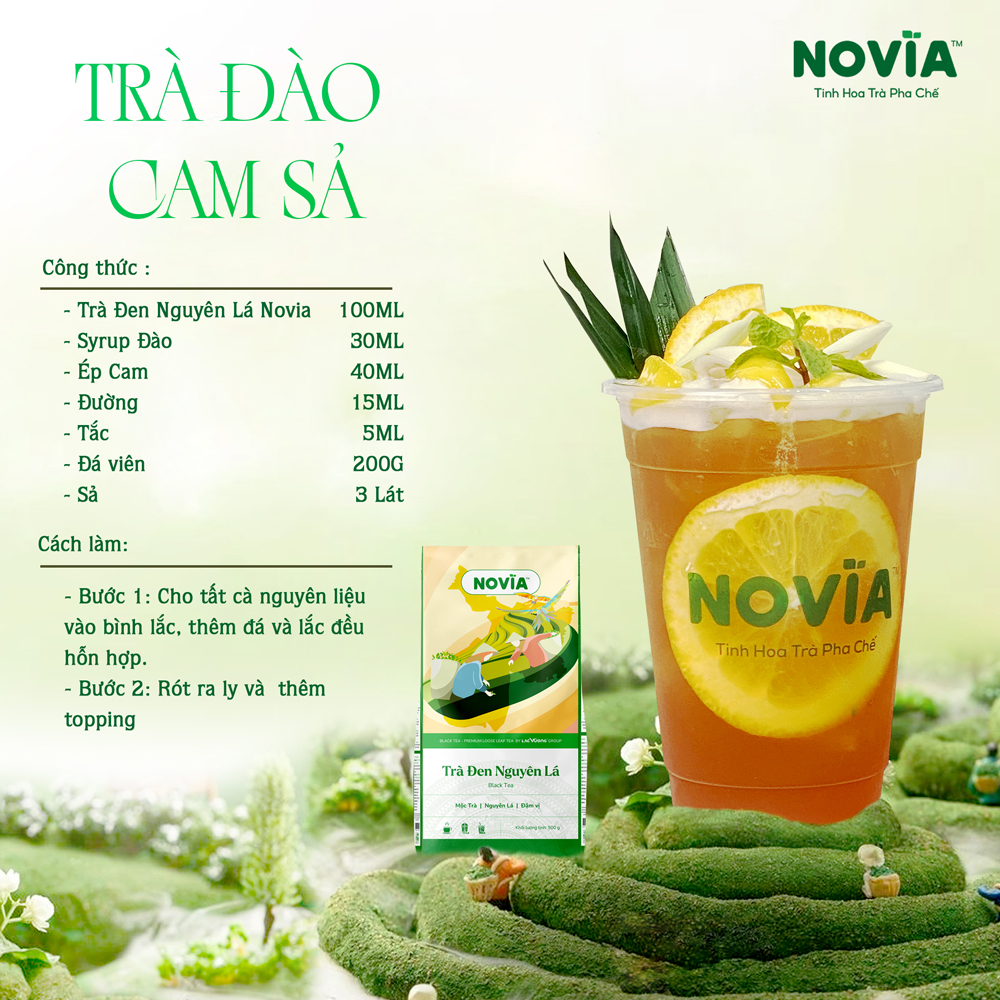 - Trà: Thường sử dụng trà trà đen nguyên lá NOVIA, tạo nền tảng cho hương vị.
